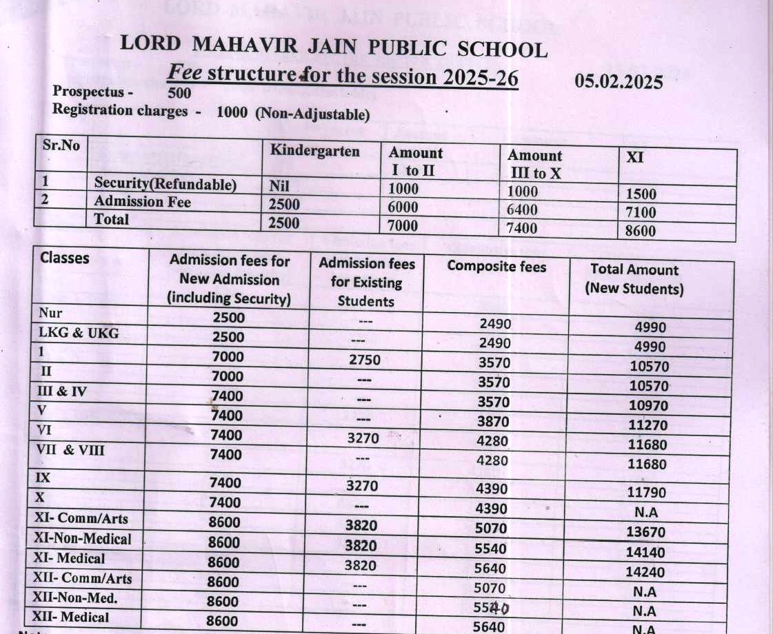 50% concession in Composite fee to Jain students will be given and they will pay full composite fees of April. No such concession as brother/Sister is allowed.